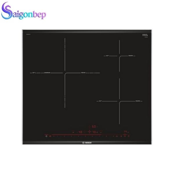 - Bếp từ Bosch PID675DC1E có thiết kế 03 vùng nấu từ: