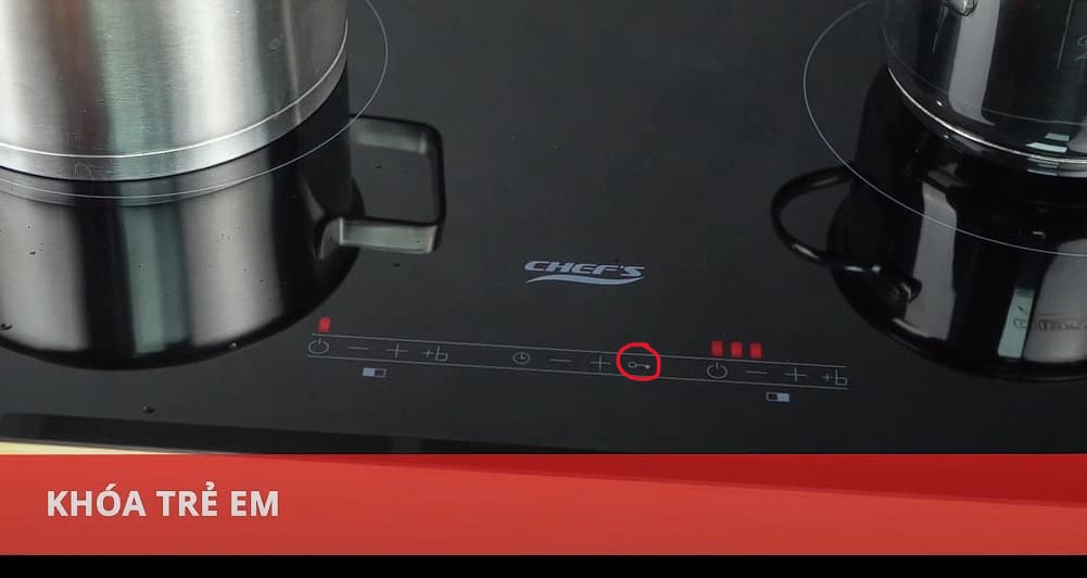 - Khóa an toàn Child Lock: Chỉ cần nhấn và giữ nút khóa trong 1 giây, toàn bộ phím điều khiển sẽ bị vô hiệu hóa, ngăn trẻ em nghịch ngợm thay đổi nhiệt độ hoặc tắt/mở bếp bất ngờ.