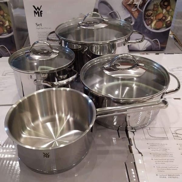 - Đa dạng ứng dụng: Bộ nồi từ WMF có khả năng sử dụng trên nhiều loại bếp khác nhau nhờ vào thiết kế 3 lớp dưới đáy nồi, bao gồm bếp từ, bếp gas, và các loại bếp khác.