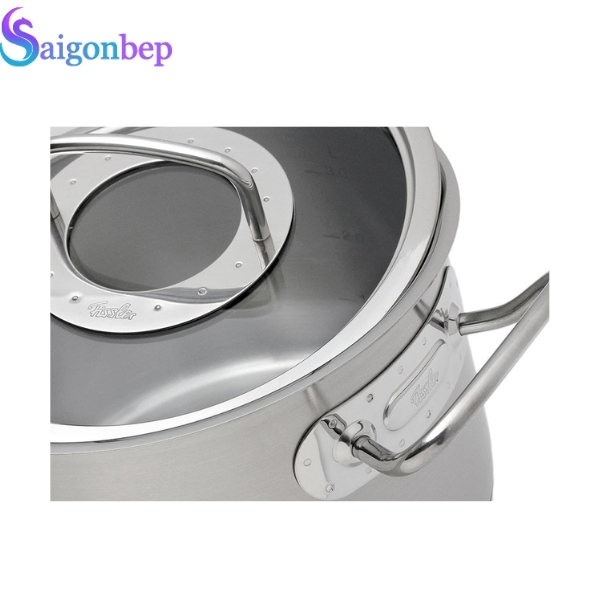 Xét về mặt tinh tế và tỉ mỉ trong thiết kế, khó có hãng đồ gia dụng nào có thể sánh ngang được với bộ nồi từ Fissler Original Pro Collection 5 Glass. Mép viền nồi rộng, có tác dụng chống tràn khi rót, giữ nồi cũng như khu vực bếp luôn sạch sẽ. Bên cạnh đó, nhà sản xuất đã tính toán các góc giữa mép nồi và quai nồi hai bên để tạo ra một góc cài vung nồi rất tiện lợi. Khi mở vung nồi, bạn thường hay lúng túng không biết đặt vung ở đâu để sạch sẽ và không làm xước mặt kính bếp? Bạn có thể cài ngay trên nồi, đây là mẹo nhỏ mà chúng tôi xin mách bạn.