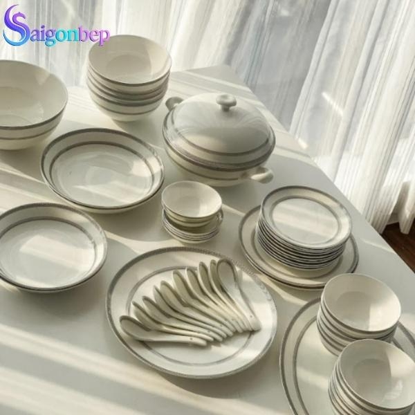 - Bộ sản phẩm đa năng 50 món: Với đầy đủ các loại bát, đĩa, tô, thìa và âu cơm, set 50 món này đáp ứng mọi nhu cầu sử dụng, từ những bữa cơm gia đình ấm cúng hàng ngày đến những buổi tiệc tùng, chiêu đãi khách sang trọng.