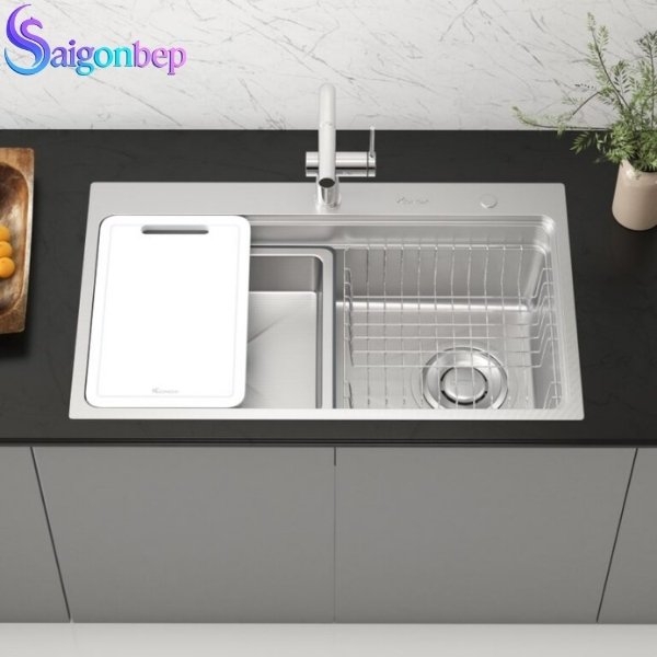 | Phụ kiện đi kèm (Full set) | Thớt nhựa, colander, rổ phụ, giá úp bát inox |