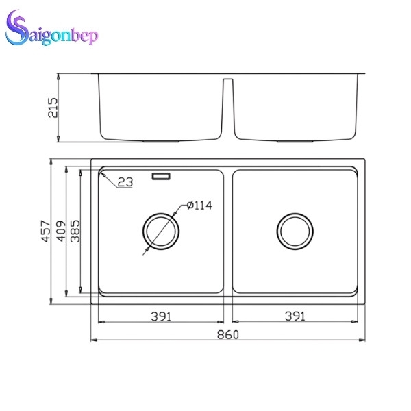 - Thiết kế 2 hố cân đối với lòng chậu sâu, giúp tăng khả năng chứa nước và hạn chế bắn nước.