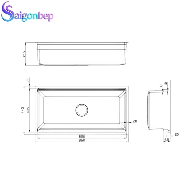 | Kích thước hố chậu (mm) | 820 x 405 |