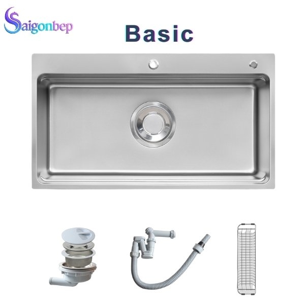 Phụ kiện đi kèm | 01 bát rác + 01 Siphon + 01 giỏ inox + 01 chậu nhỏ + 01 thớt inox |