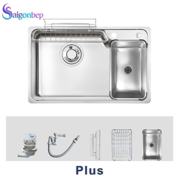 | Phụ kiện đi kèm (Tùy vào bản Basic hoặc Plus) | - 01 chậu rửa bát Kluger KH8050FS - 01 Siphon Kluger Z SLIM (kiểu Nhật, mẫu mới) - 01 Bát rác Kluger KS – 185J (đường kính 185mm) - 01 Giỏ inox để đồ KB – 607S - 01 Chậu rửa nhỏ KSWB – 409FS - 01 Giá để đồ KB – 601H |