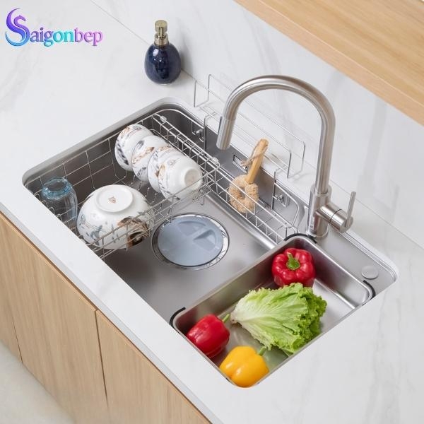 Thiết kế chậu rửa một hố không vách ngăn giúp tối ưu không gian rửa và vệ sinh. Việc không có vách ngăn giúp bạn dễ dàng thao tác, đồng thời chậu sâu lòng giúp chứa được nhiều dụng cụ và tránh tràn nước sang khu vực bên ngoài.