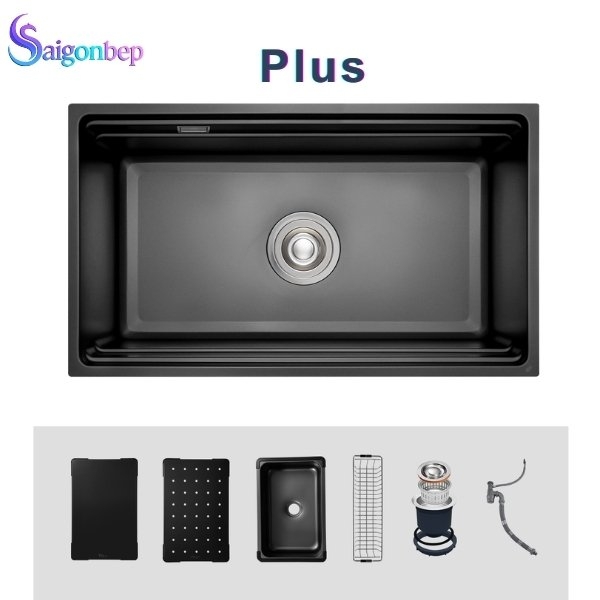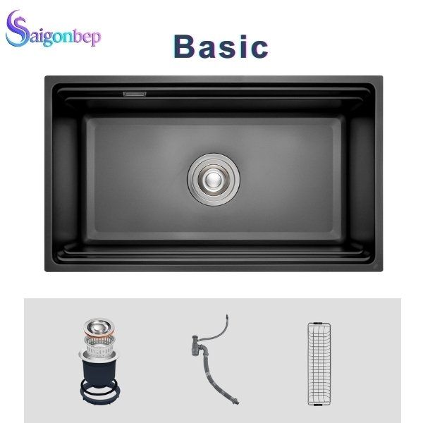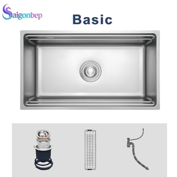 Phụ kiện đi kèm | Bản Basic: 01 bát rác + 01 Siphon + 01 giỏ inox. Bản Plus: 01 bát rác + 01 Siphon + 01 giỏ inox + 02 thớt inox + 01 chậu inox nhỏ |