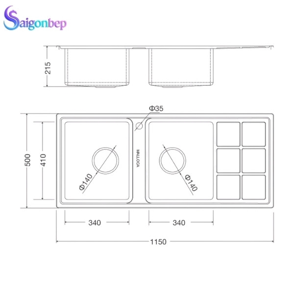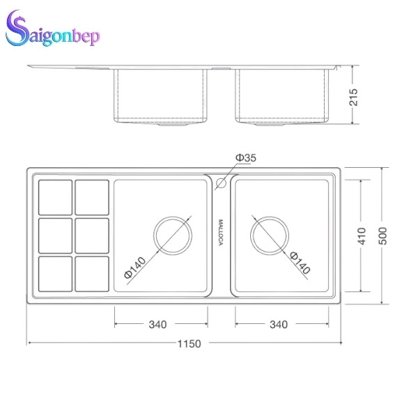 - Chậu rửa chén Malloca MS 8815R/L gây ấn tượng bởi phong cách thiết kế hiện đại, đường nét tinh tế và độ hoàn thiện sắc sảo. Với kích thước tổng thể 1150R x 500S x 215C mm, sản phẩm phù hợp cho nhiều không gian bếp từ trung bình đến rộng rãi.