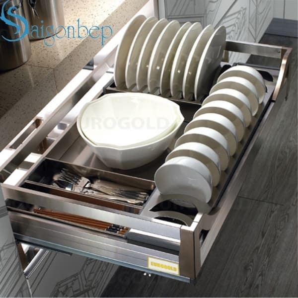 -Giá inox EUI133.600 được lắp đặc âm tủ bếp dưới tận dụng tối đa được không gian, việc lấy bát đĩa sẽ trở nên dễ dàng hơn bao giờ khác.