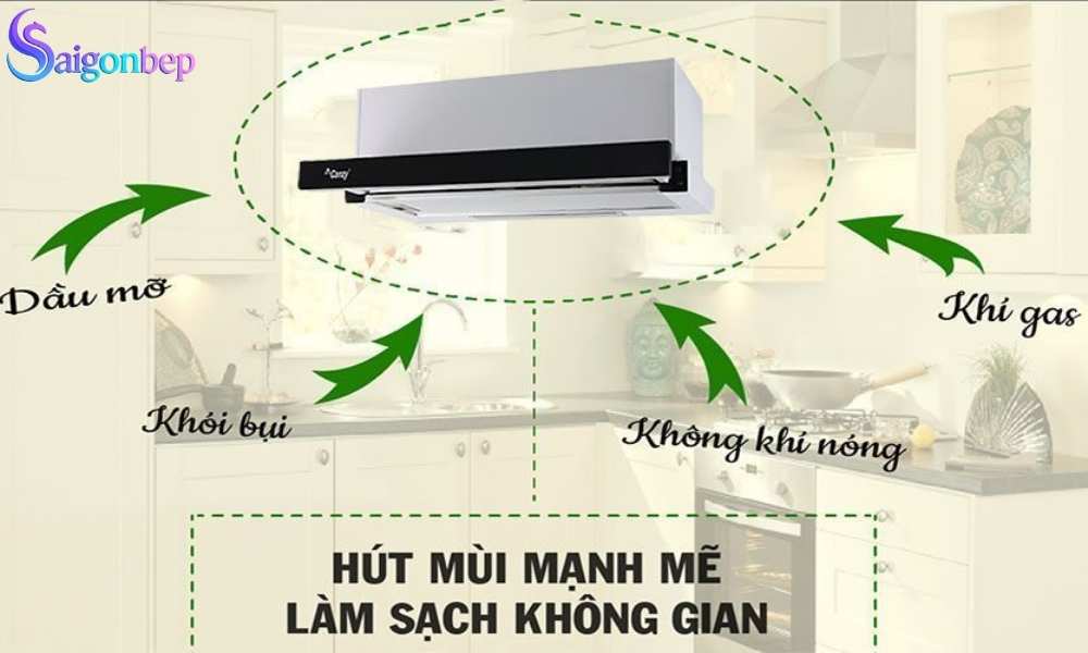 Hút mùi nhanh chóng loại bỏ khói, dầu mỡ