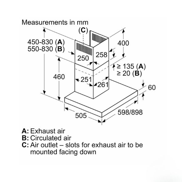 - Thiết kế gắn tường hình chữ T thanh lịch, máy hút mùi Bosch mang vẻ đẹp hiện đại, tinh tế với thân inox bền bỉ và mặt kính đen bóng. Kiểu dáng tối giản nhưng sang trọng, phù hợp với mọi không gian bếp, dễ dàng vệ sinh và chống bám bẩn hiệu quả.