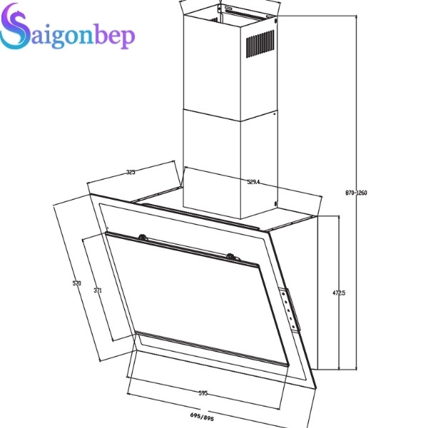 Góc nghiêng máy hút mùi Canzy CZ-399T Glass