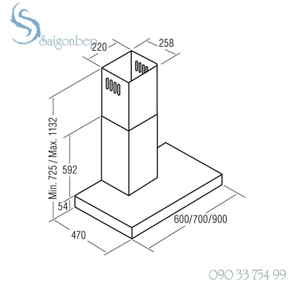 Là máy hút mùi kính thẳng dạng treo tường