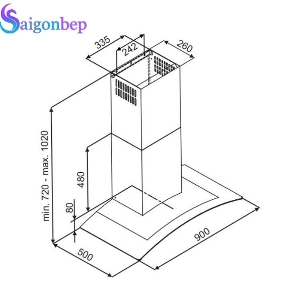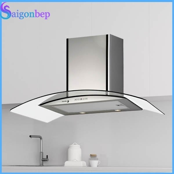 - Máy hút mùi bếp gắn tường dễ dàng lắp đặt, dạng kính cong treo tường rộng 70cm, chất liệu thép không gỉ kết hợp kính chịu lực bền bỉ