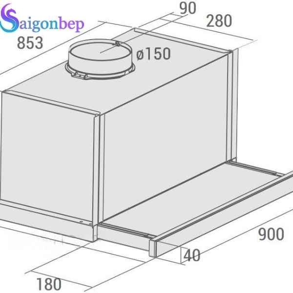 - Máy có thiết kế máy hút mùi âm tủ, siêu mỏng với kích thước 90 cm cấu tạo bằng thép không gỉ.