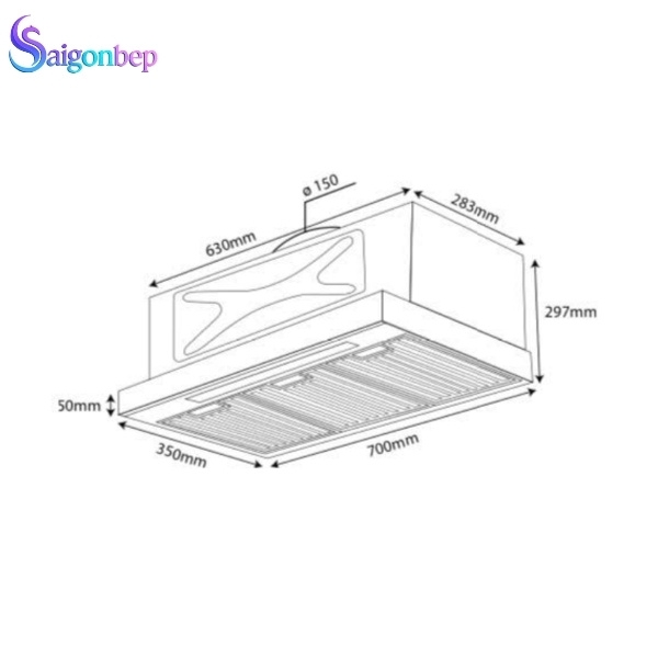 - Máy hút mùi Turbo Smart 3D X3D-350D sở hữu kích thước 700 × 297 × 350 mm, độ dày chỉ 35 cm, giúp máy dễ dàng hòa hợp vào các không gian bếp hiện đại, kể cả những căn bếp chung cư có diện tích hạn chế.