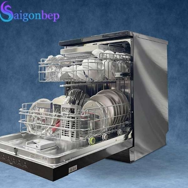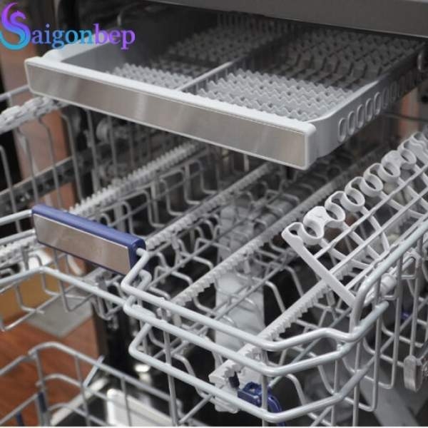 Sản phẩm được trang bị 3 khay chứa linh hoạt cùng giỏ để dao kéo riêng biệt, cho phép chứa lên tới 14 bộ bát đĩa châu Âu, đáp ứng nhu cầu sử dụng của gia đình đông người. Hệ thống ray trượt êm ái giúp thao tác kéo – đẩy nhẹ nhàng ngay cả khi chứa nhiều đồ.