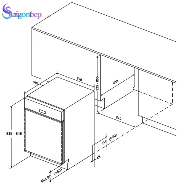 Kích thước khoét âm tủ | 605R x 605S x 825-855C (mm) |