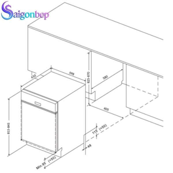 | Kích thước khoét âm tủ | 610 (R) x 610 (S) x 780/810 (C) mm |