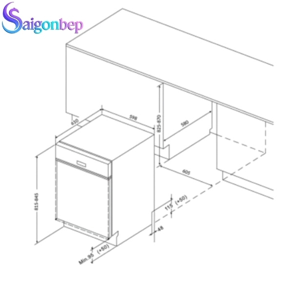| Kích thước khoét âm tủ | 610 (R) x 610 (S) x 780–810 (C) mm |