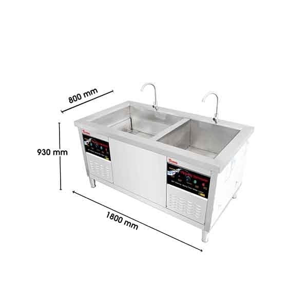 Bảng điều khiển với phím cơ phía dưới, riêng biệt cho 02 chậu rửa.